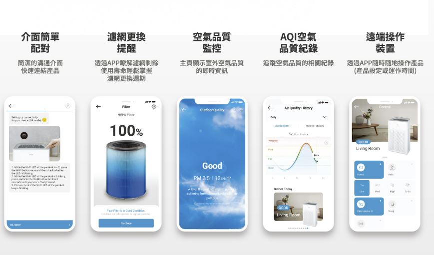 而且,這台空氣清淨機還支援APP控制!📲 無論你身處何地,只要打開APP,就能隨時檢查家裡的空氣質量,調整運行模式,甚至遠程開關機。這樣一來,即使你不在家,也能輕鬆掌控家裡的空氣狀況。真的是懶人必備的功能呀!😎(Wifi僅支援2.4GHz頻段)